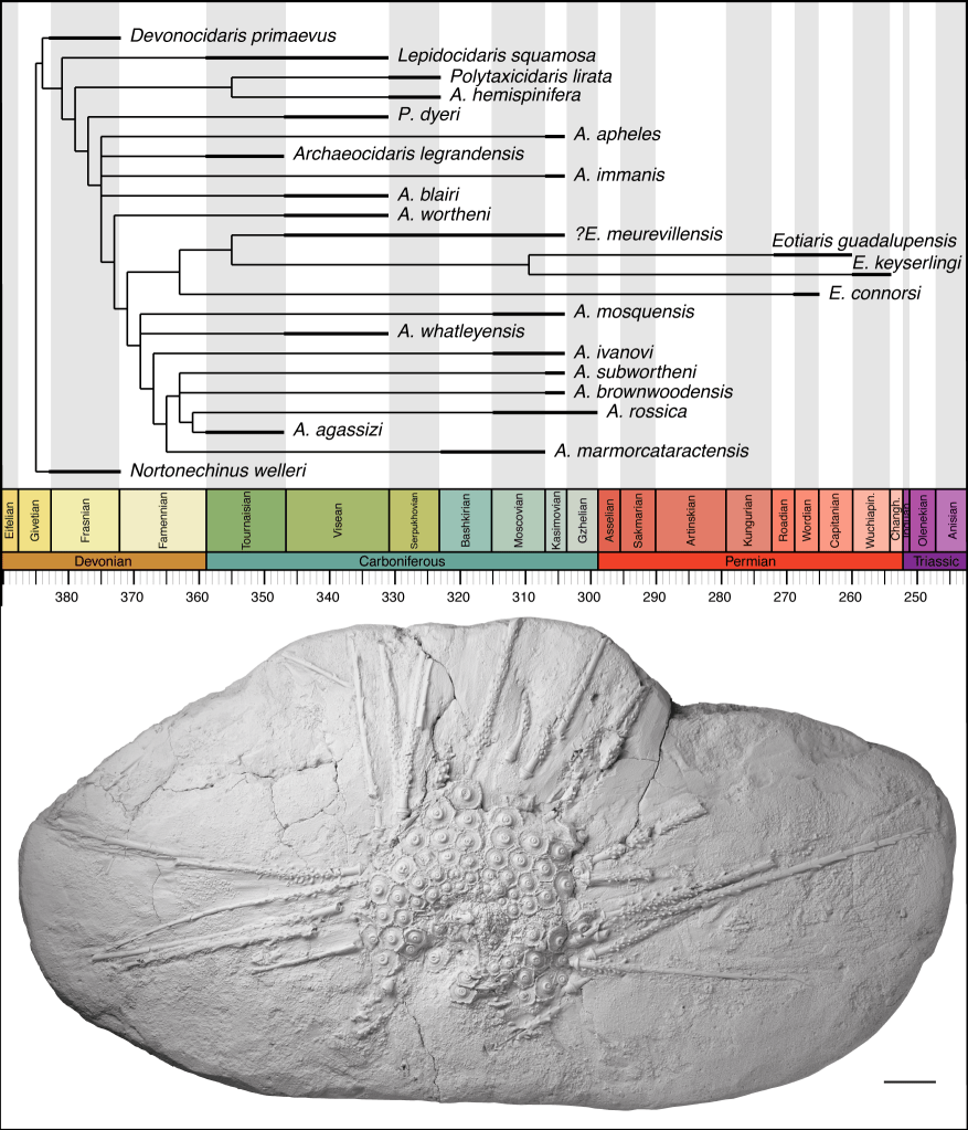 Because of their excellent fossil record, sea urchins provide an ideal model group to examine the interplay of broad-scale changes in the Earth system and animal diversity. For much of my work, I use phylogenetic analyses to understand patterns of origination and extinction in various echinoderm groups. This work has provided into the pace and magnitude of diversification, and unraveled key morphological transitions underlying the evolution of the echinoderm body plan. In addition to larger scale analyses of diversification, the foundation of all paleobiological research is fossil specimens, and in order to increase the precision of large-scale macroevolutionary analyses, it is also important to generate novel data. As such, I undertake taxonomic and systematic research and describe new fossil faunas from around the world in order to produce a more finely calibrated understanding of ancient biodiversity.